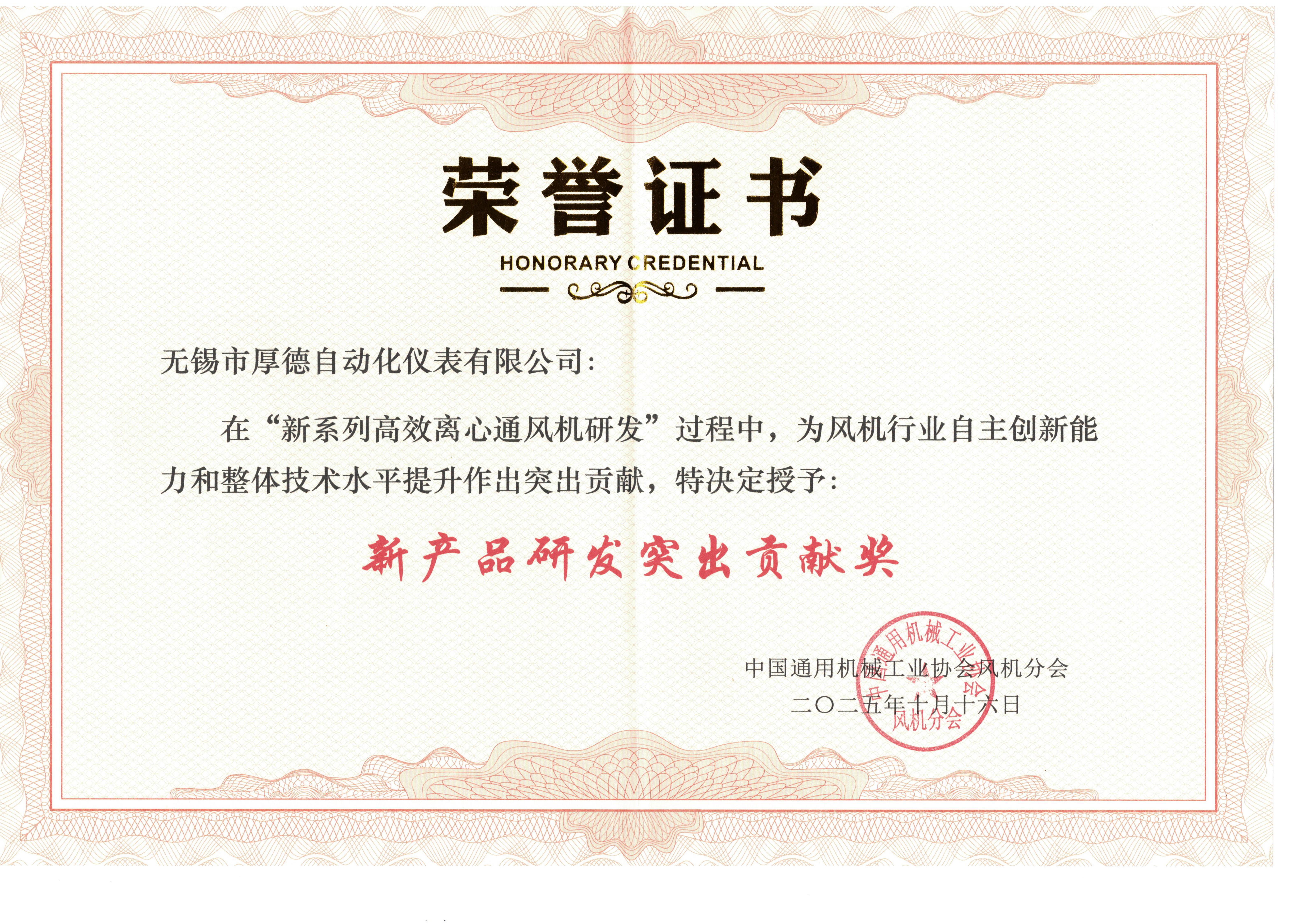 會議期間,協會對本次“新系列高效離心通風機研發”中的突出貢獻企業予以表彰, 我司被授予“新產品研發突出貢獻獎”。同時,我司總工程師繆東衛也因在該研發過程中發揮重要作用,榮獲個人“新產品研發突出貢獻獎”。
