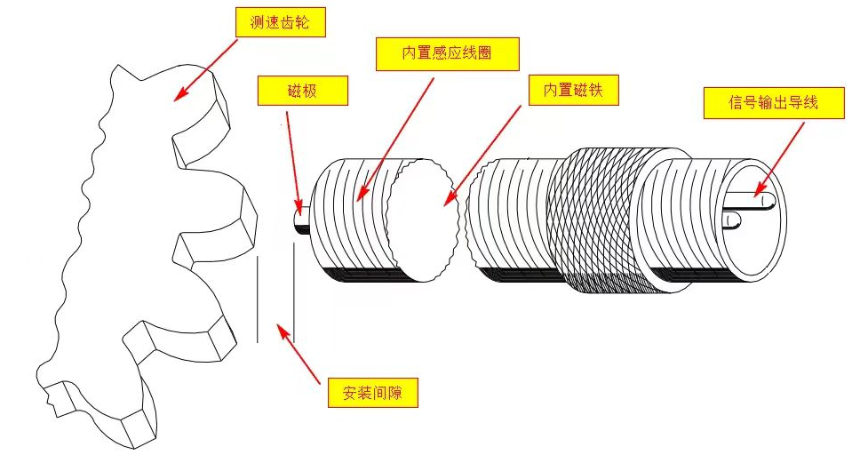 磁阻式傳感器基于電磁感應定律和磁阻效應。傳感器內部包含一個永磁體和磁敏電阻元件。